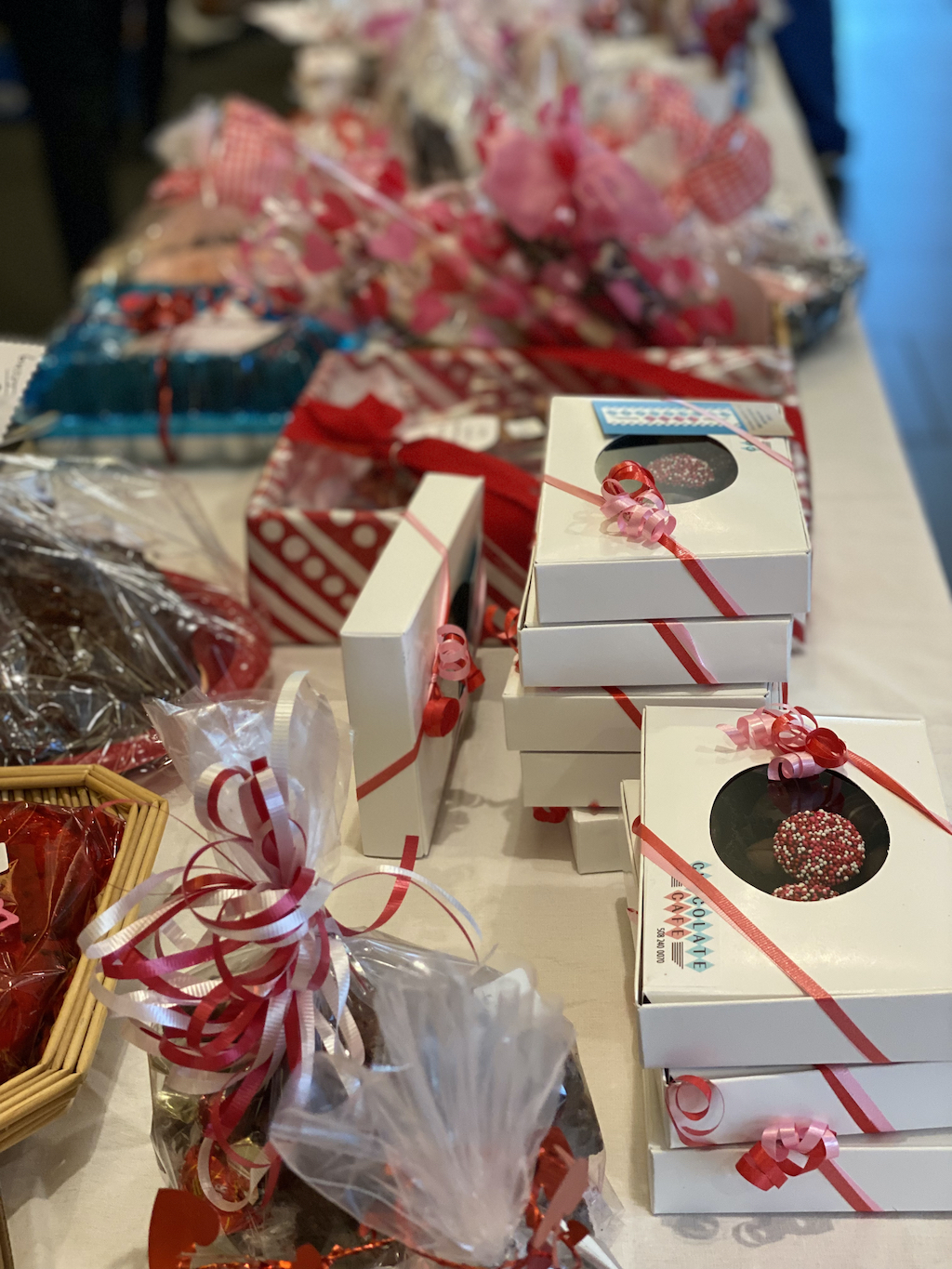 We filled the Mugar lobby at Cape Cod Hospital with tables of chocolate treats — from cookies, to truffles, to cakes and cupcakes, and more just in time for Valentine’s Day. It was a huge success and we sold out quickly. Thanks to all the hospital employees who stopped by, many were buying treats for their coworkers.