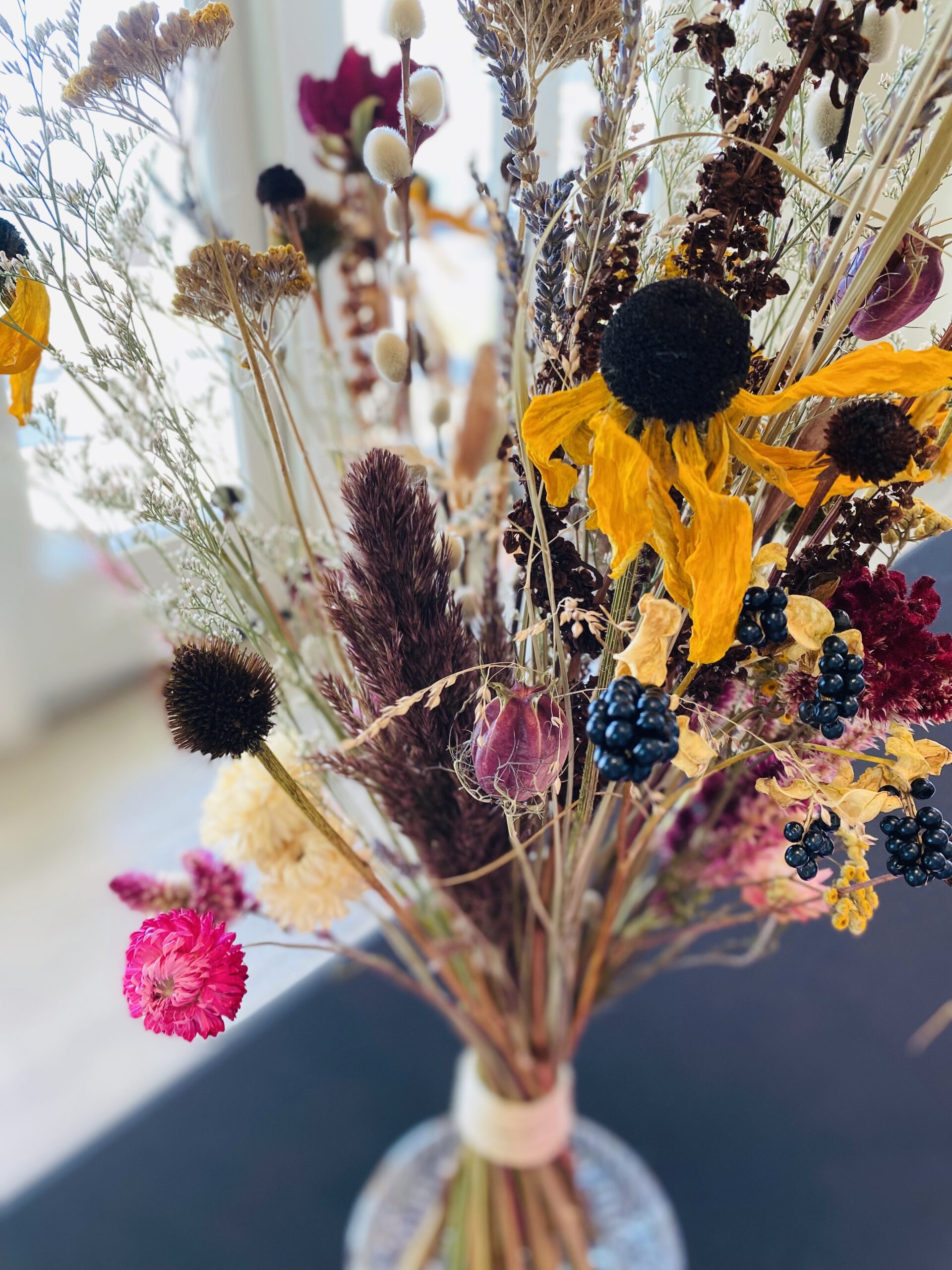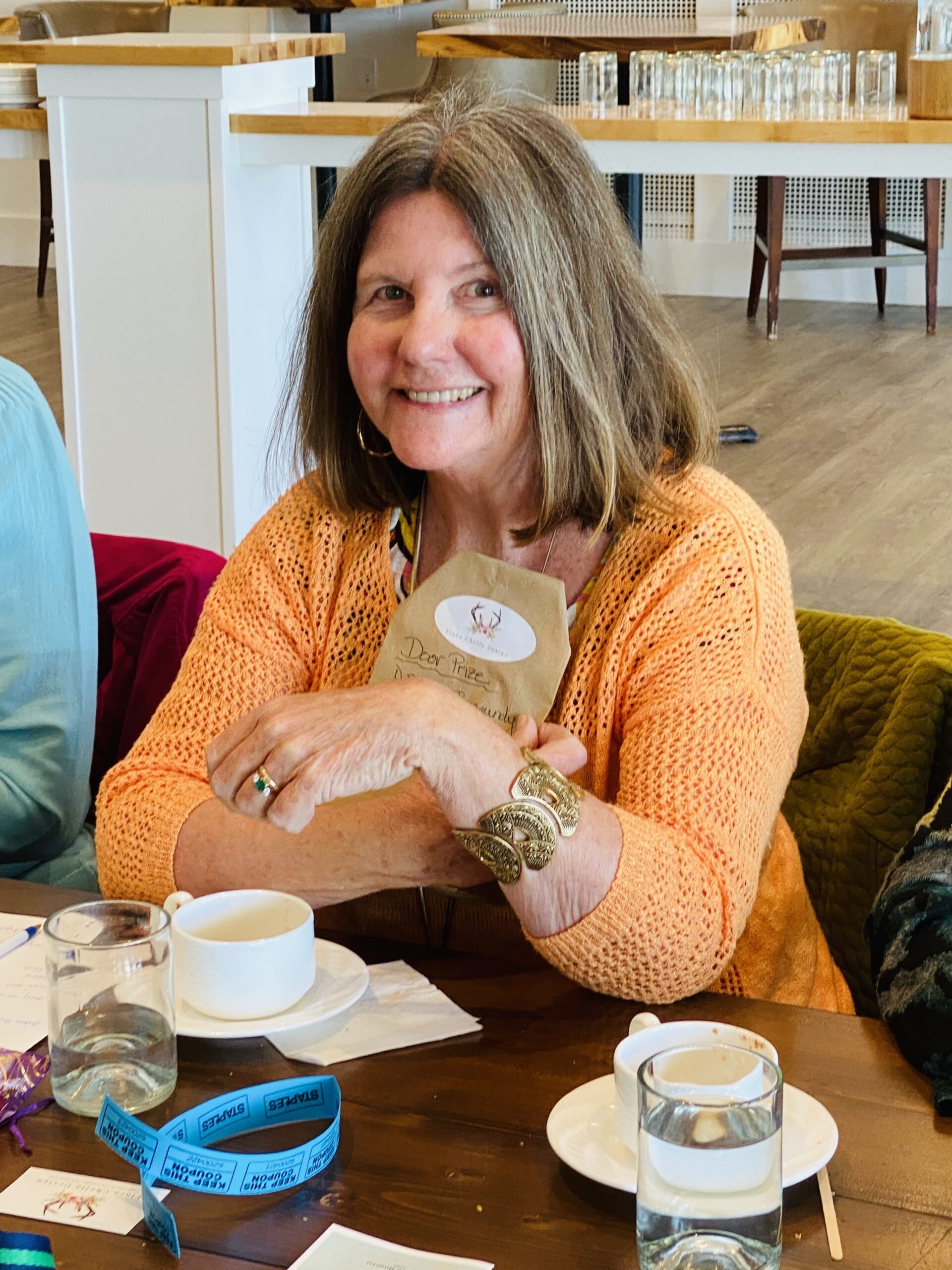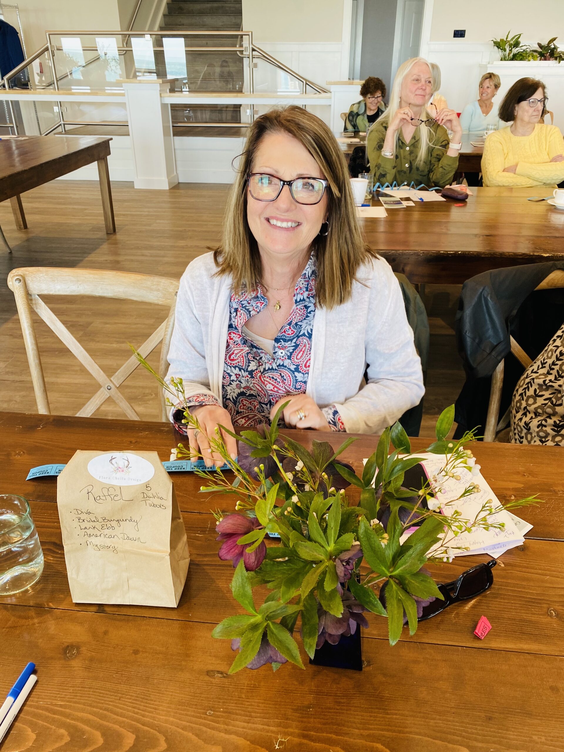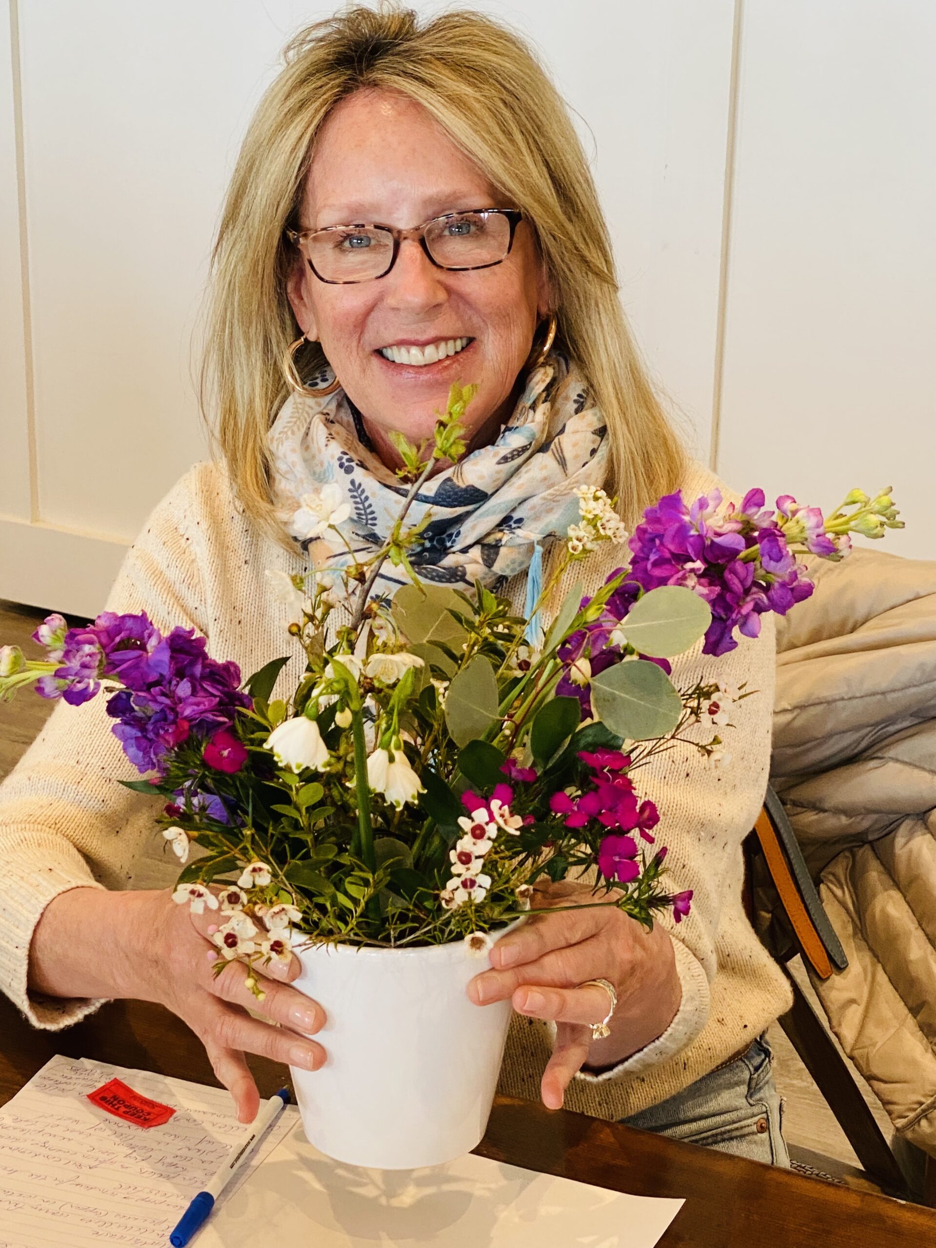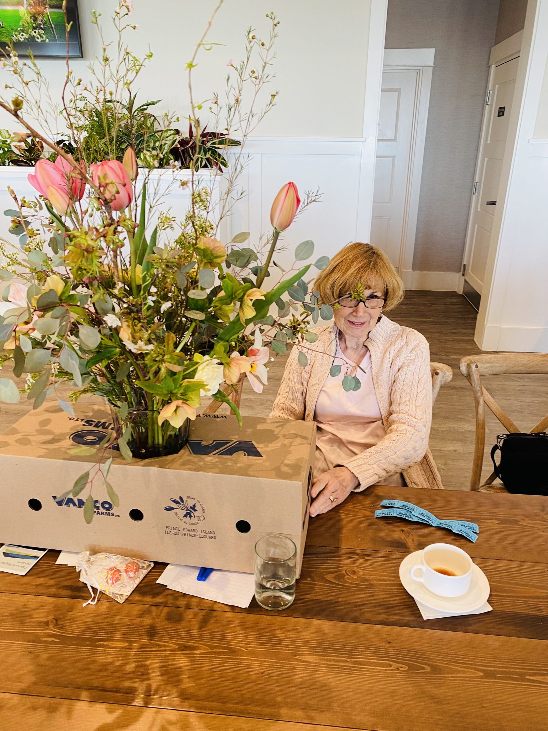 Raffle prizes included the beautiful arrangements Kate made, several bags of Kate’s favorite and prized dahlia tubers, gift baskets, and more. Many smaller arrangements were given out as door prizes.